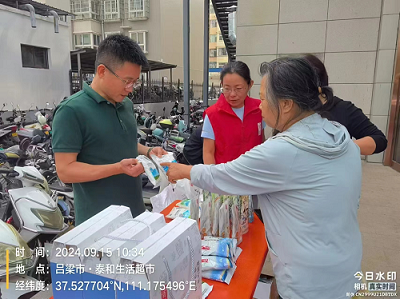 吕梁分公司在美特好广场、幸福家园小区门口向附近居民、商家及过路群众详细解读日常饮食中高盐风险及危害,宣传“915”(就要5克)减盐理念,传播低盐饮食知识以及如何辨别真假食盐,积极倡导“吃好盐、选晋盐”的健康用盐理念。