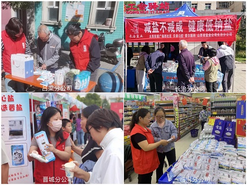 联合太西街道广场西社区、贝森口腔、爱尔眼科在社区驿站开展以“减盐不减咸,健康低钠盐”为主题的健康生活方式宣传活动,与长子县盐业公司、郊区盐业公司、壶关县营销站联合开展节日宣传活动,共同完善盐业发展“一张网”网点布局。